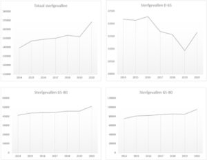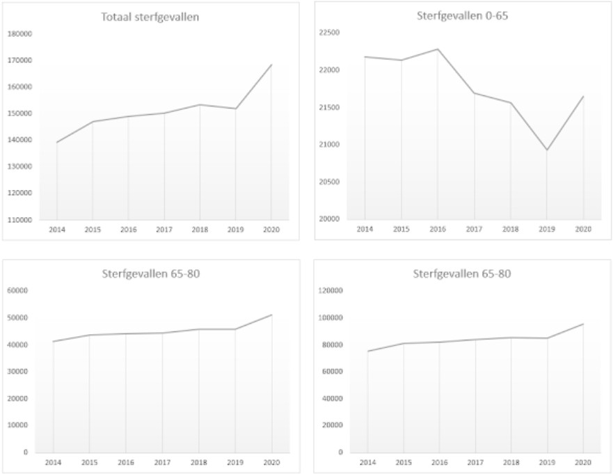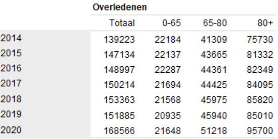 Noot: de piek in 2015 werd veroorzaakt door een griepepidemie. Door de maatregelen hadden we minder griepdoden in 2020: door thuis te blijven of afstand te houden, kun je anderen ook niet met griep besmetten.