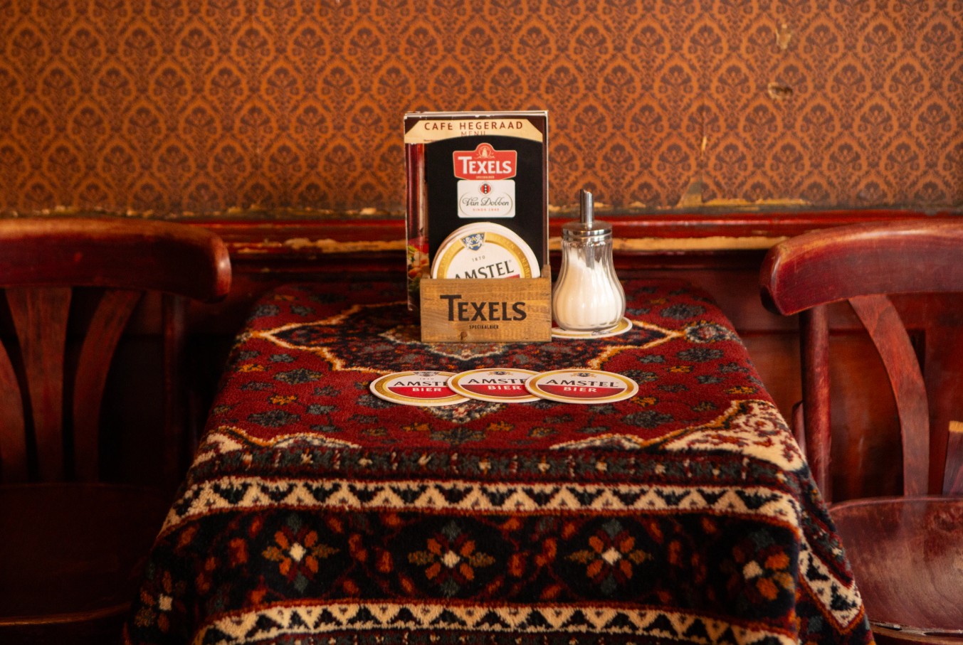 Ik weet het, het zijn allemaal begrijpelijke en soms zelfs goede ontwikkelingen. Ik hou van onze levendige kleurrijke stad die zoveel mooie culturen (en daarmee ook zoveel lekker eten en drinken!) herbergt, maar toch mis ik soms het platte Amsterdams, de zooi op straat, het ongereguleerde uitgaansleven – en ja, vooral die bruine kroegen. Zoeentje met smoezelige rode Perzische kleedjes op de tafels, kristalgeslepen asbakken, een barman of -vrouw die bij het interieur hoort. En dan met een lekker sigaretje en een drankje een potje toepen met de andere vaste klanten…