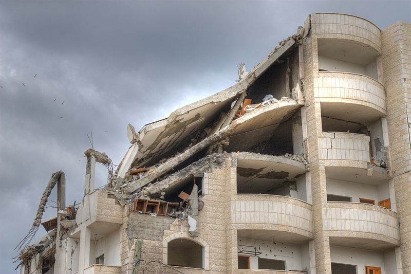 Een kleine toelichting: Israël heeft de gewoonte om eerst een lichte raket op een huis af te vuren om bewoners de kans te geven te vluchten, om dan na 53 seconden het huis plat te bombarderen. Deze tactiek heet ‘Roof Knocking’.